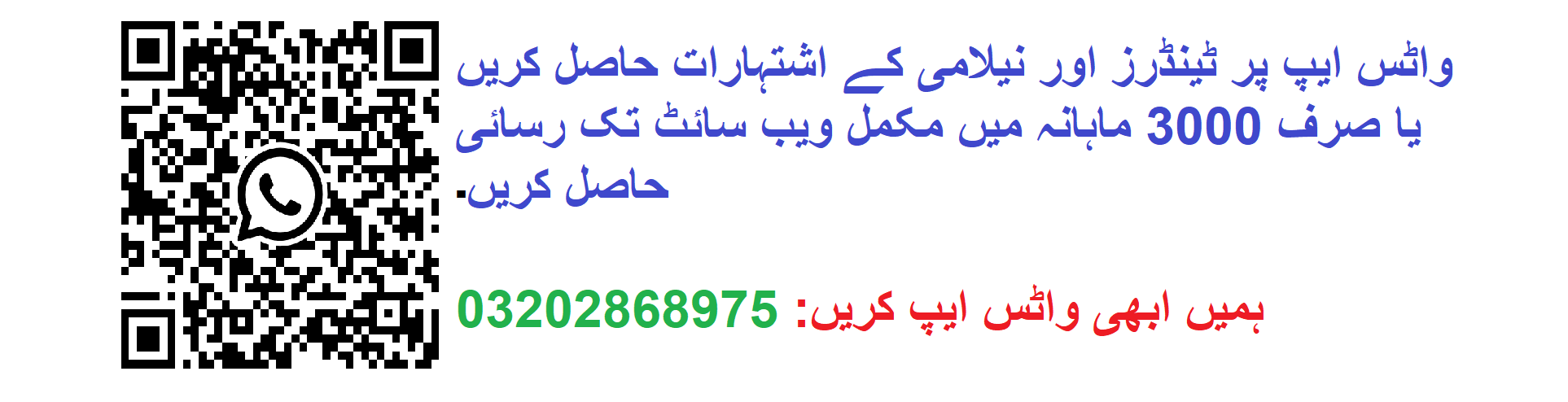 1 Month = Rs 3000 (30 days) 6 Months = Rs 15000 1 Year = Rs 20000 (Recommended) Send us WhatsApp Msg to Activate Tender Service : 03202868975 | |||